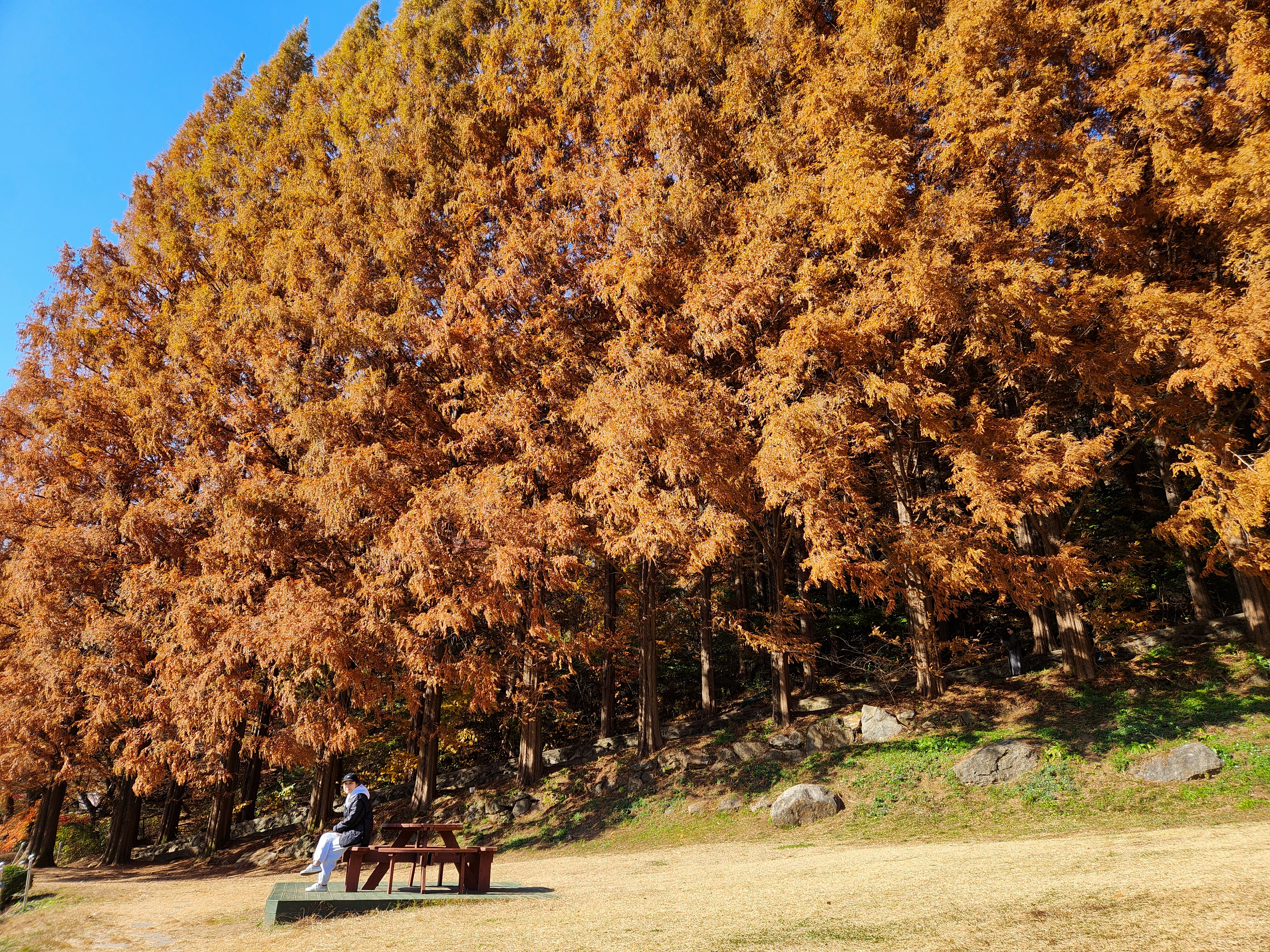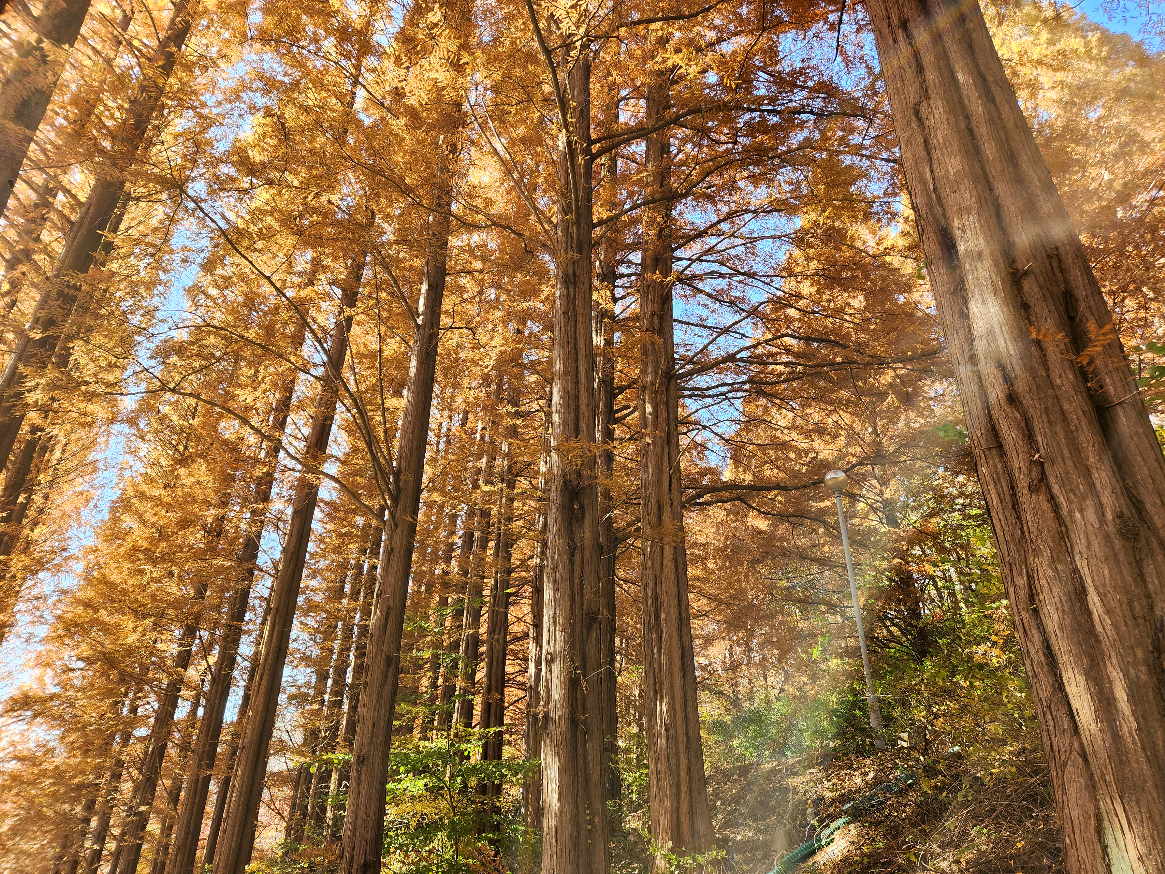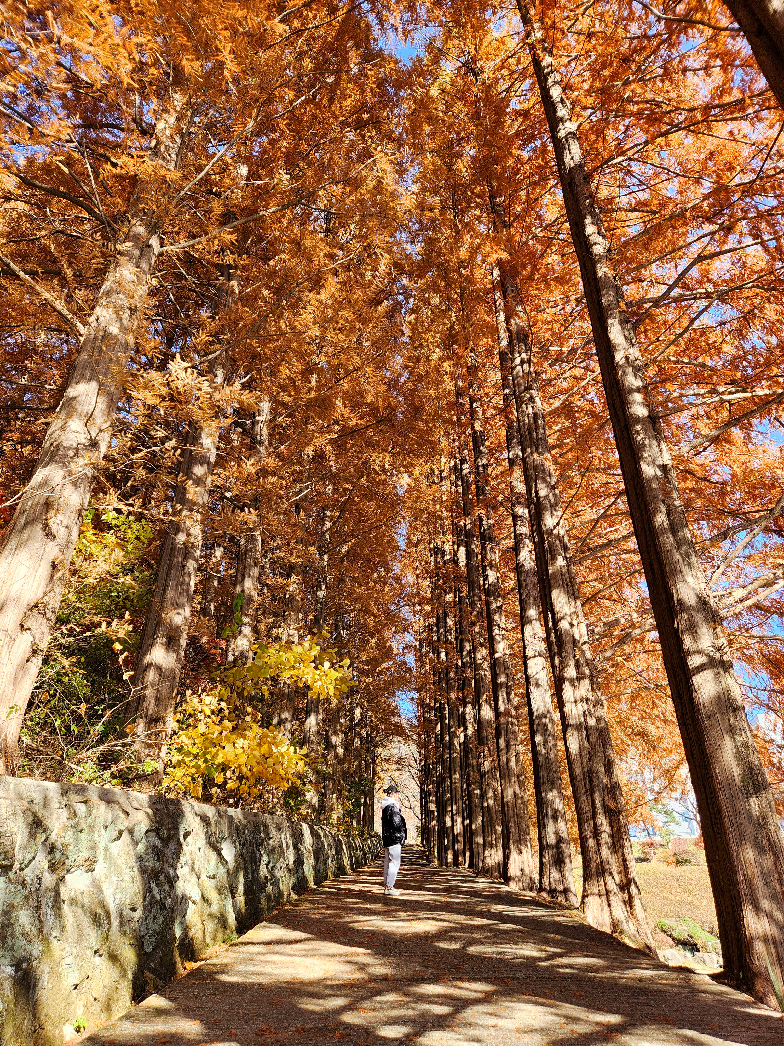 여기 메타세콰이어 나무는 정말 오래된 나무처럼 보인다. 예전에 영월에 캠핑장에서 봤던 메타세콰이어 나무도 정말 크다고 생각했었는데, 여기 경기도 용인 단풍 명소 명수당에 있는 메타세콰이어 훨씬 크더라