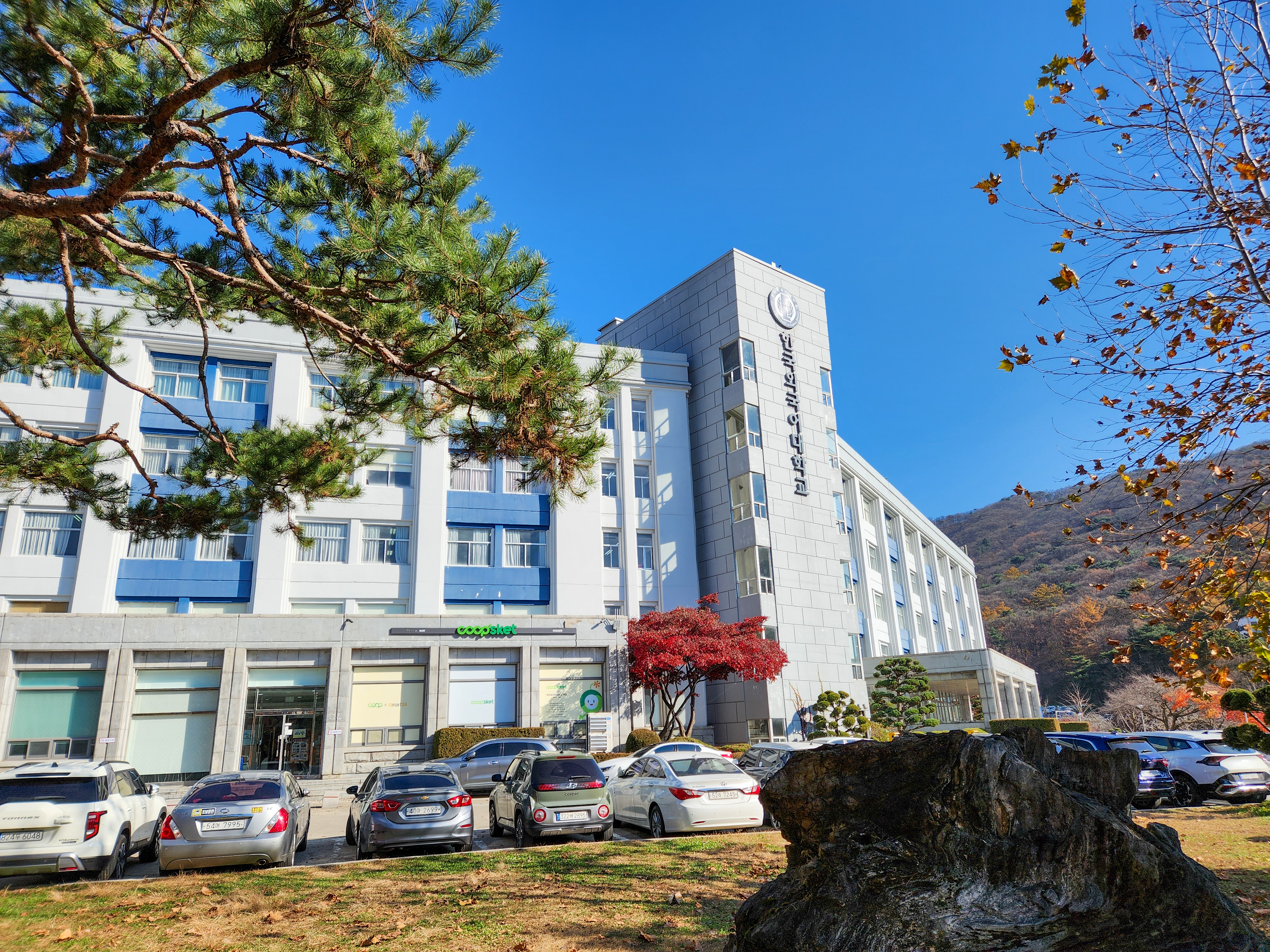 교양관으로 쭉 들어오면 교양관 바로 앞에 정자가 보인다 여기서 100M 정도 더 들어가면 주차도 가능하고 내리면 바로 앞에 단풍 명소 명수당 메타세콰이어 길이 보인다.