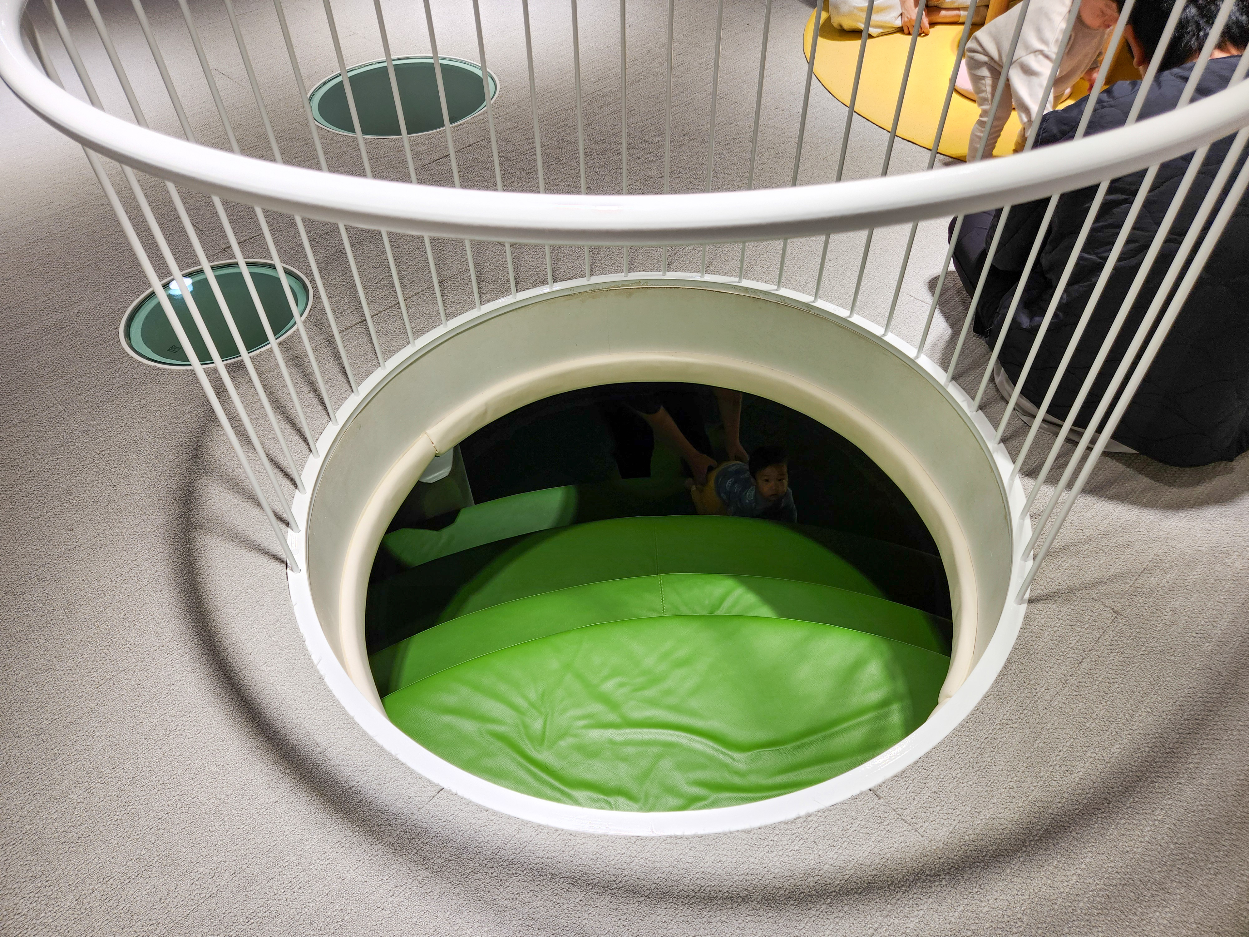 볼풀장 옆에 2층으로 올라가는 언덕이 있는데, 경사가 가파른 곳은 미끄럼틀처럼 이용할 수 있다. 걷기 시작하는 아기에게는 오르막길과 계단이 대근육 발달에 많이 도움 된다고 한다. 그리고 열무는 오르막길과 계단을 오르고 나면 본인이 생각해도 뿌듯한지 희열을 느낀다.