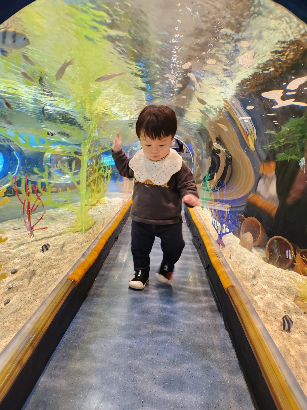 애기들을 위한 수족관이 있었는데 수족관 중앙에 터널이 있어서 물고기 보며 걸음마 연습하기 딱 좋은 곳이었다. 열무도 역시나 터널을 왔다 갔다 하며 신나게 뛰어다니더라, 아직도 볼게 많은데 이제 좀 가자... 여기서 한 20~30분을 놀다가 갈 생각을 안 하길래 열무를 업고 강제로 바이바이~ 다행히 열무는 집착 같은 걸 하지 않아서 쿨하게 돌아섰다.