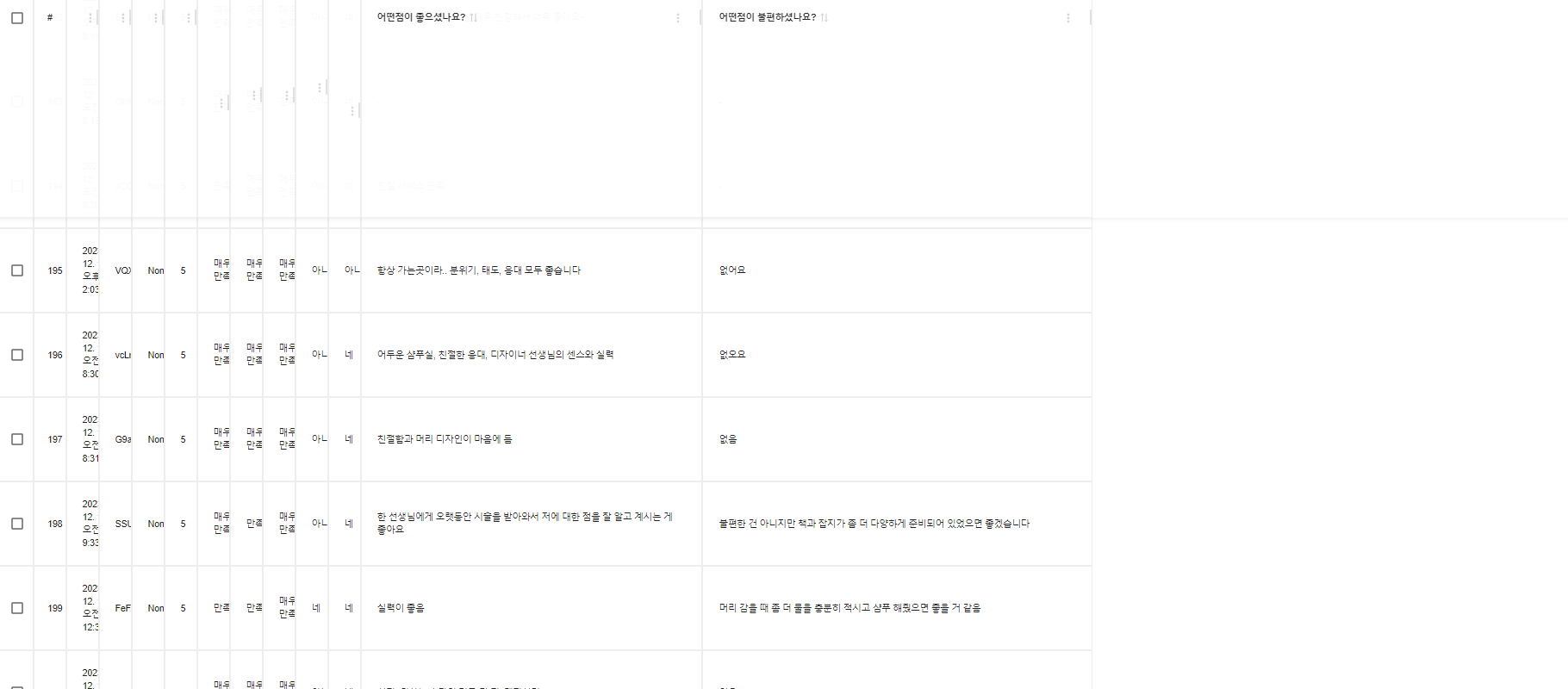 이 외에도 샴푸 서비스에 대한 다양한 불만족 평가가 있었다. 이러한 불만족 평가들은 미용실에서 겸허히 받아들여 개선하기로 마음먹었다.