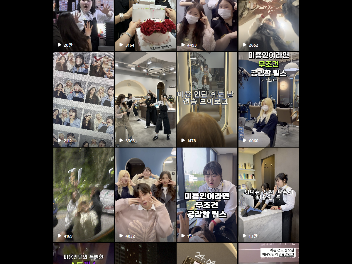 바쁜 일상 속에서 긴 영상을 볼 시간이 없는 사람들에게 짧은 영상은 매우 유용하기 때문인데, 미용실에서는 스타일링 팁, 제품 소개, 고객 리뷰 등 다양한 콘텐츠를 짧고 간결하게 전달할 수 있다. - 높은 참여도와 공유율