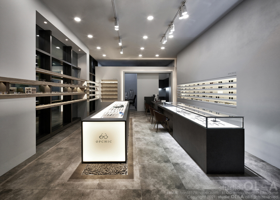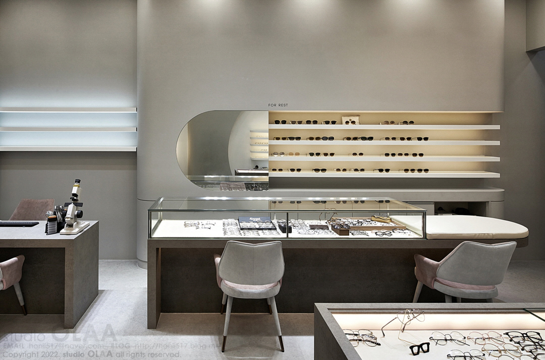 스투디오올라의 안경원 인테리어는 혁신적이었다. 보통 우리가 기존에 알고 있는 안경원을 인테리어를 생각해 보면 어떤가? 정말 촌스럽다, 안경원 인테리어는 다 똑같다는 생각 말고는 들지 않는다. 그런데 스투디오올라의 안경원 인테리어는 안경원이 맞나 실을 정도로 정말 트렌디하다.