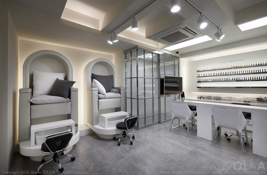 이동헌 대표님과 필자는 미용실 인테리어에서 그치지 않고 인테리어 영역을 확장하기로 마음먹었다. 그리고 시작한 게 네일샵 인테리어였다. 미용실과 같은 뷰티 업종으로 네일샵 인테리어도 정말 좋은 결과물을 잘 만들어 냈었다. 그런데 여기서 문제가 있었다. 네일샵은 미용실과 다르게 대부분 평수가 작고 인테리어 요소가 크게 중요하지 않기 때문이다. 서로의 이해관계가 다르다 보니 네일샵 인테리어로 확장하기에는 시장이 맞지 않다고 판단하여, 다시 새롭게 찾은 인테리어 업종이 안경원 인테리어였다.