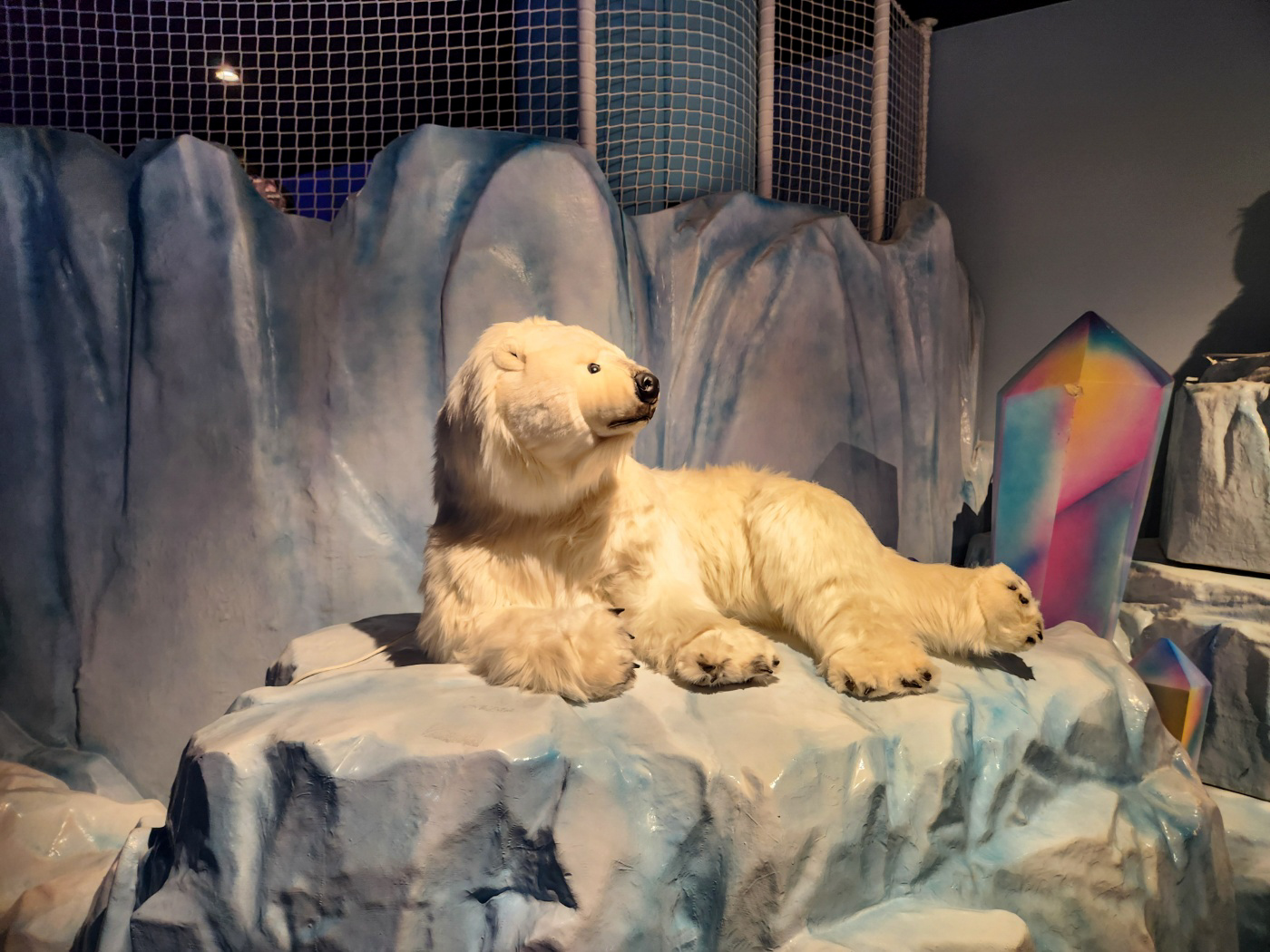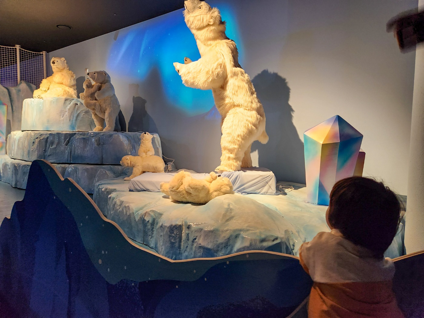 3층에 올라가면 북극곰을 볼 수 있는데, 이것보다 키즈 카페처럼 만들어 놔서 볼풀장이랑 블록, 트램펄린 등등 놀거리가 있는데, 식당이나 카페가 따로 없다는 게 조금 아쉽긴 했다.