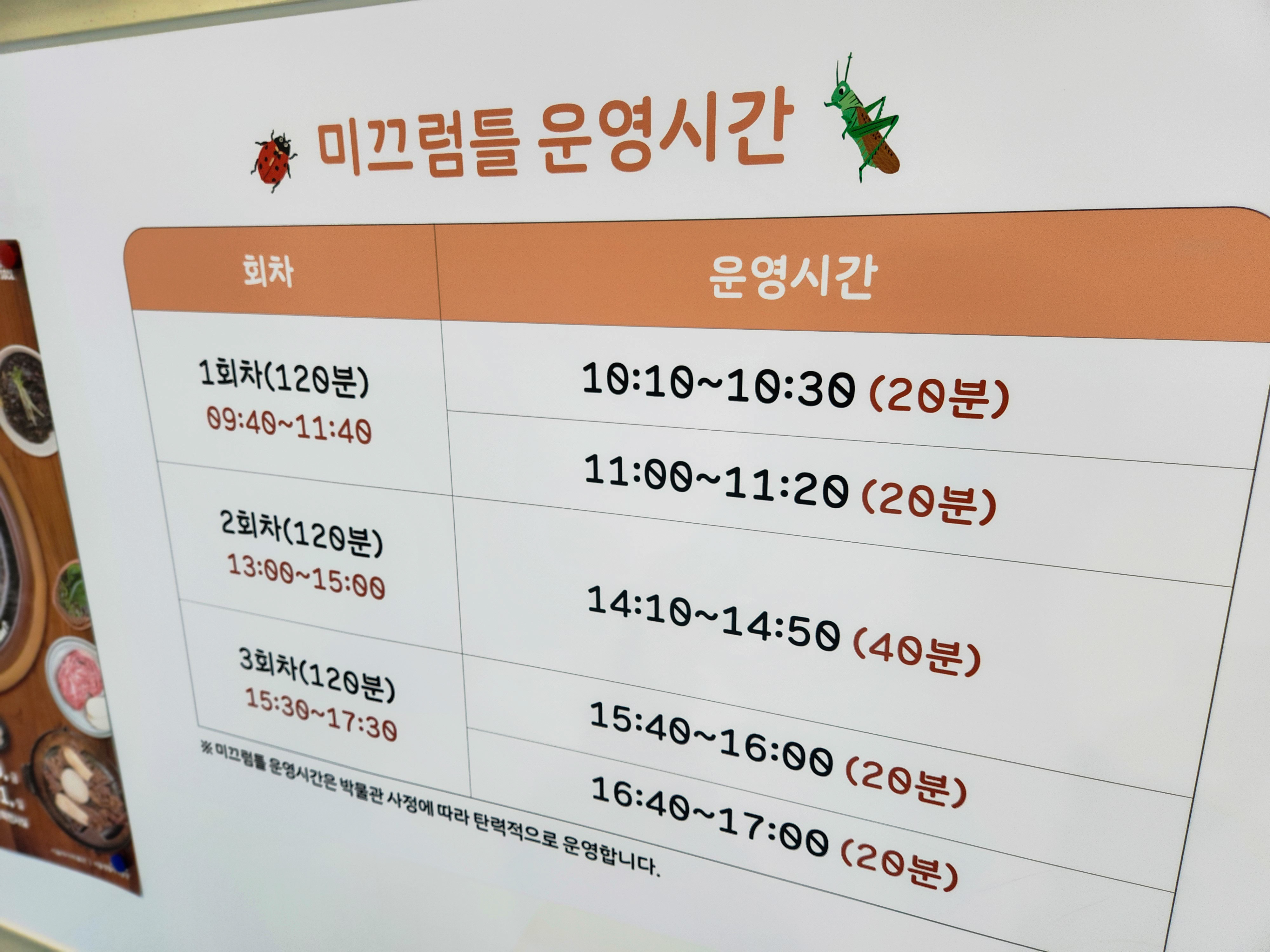 AM09:40 - PM05:30 (1일 3회차, 회당 120분 관람)