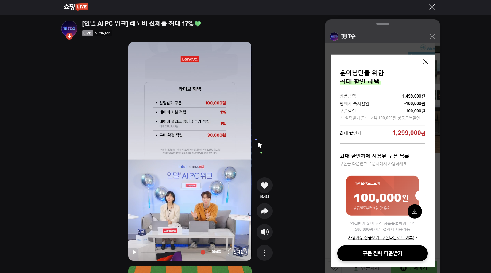 네이버 쇼핑 LIVE만 봐도 알 수 있다. 많은 사람들이 라이브를 시청하면서 제품을 구매하는데, 알림받기 쿠폰 할인 금액이 적지 않기 때문에 쿠폰 발행은 거의 필수다.