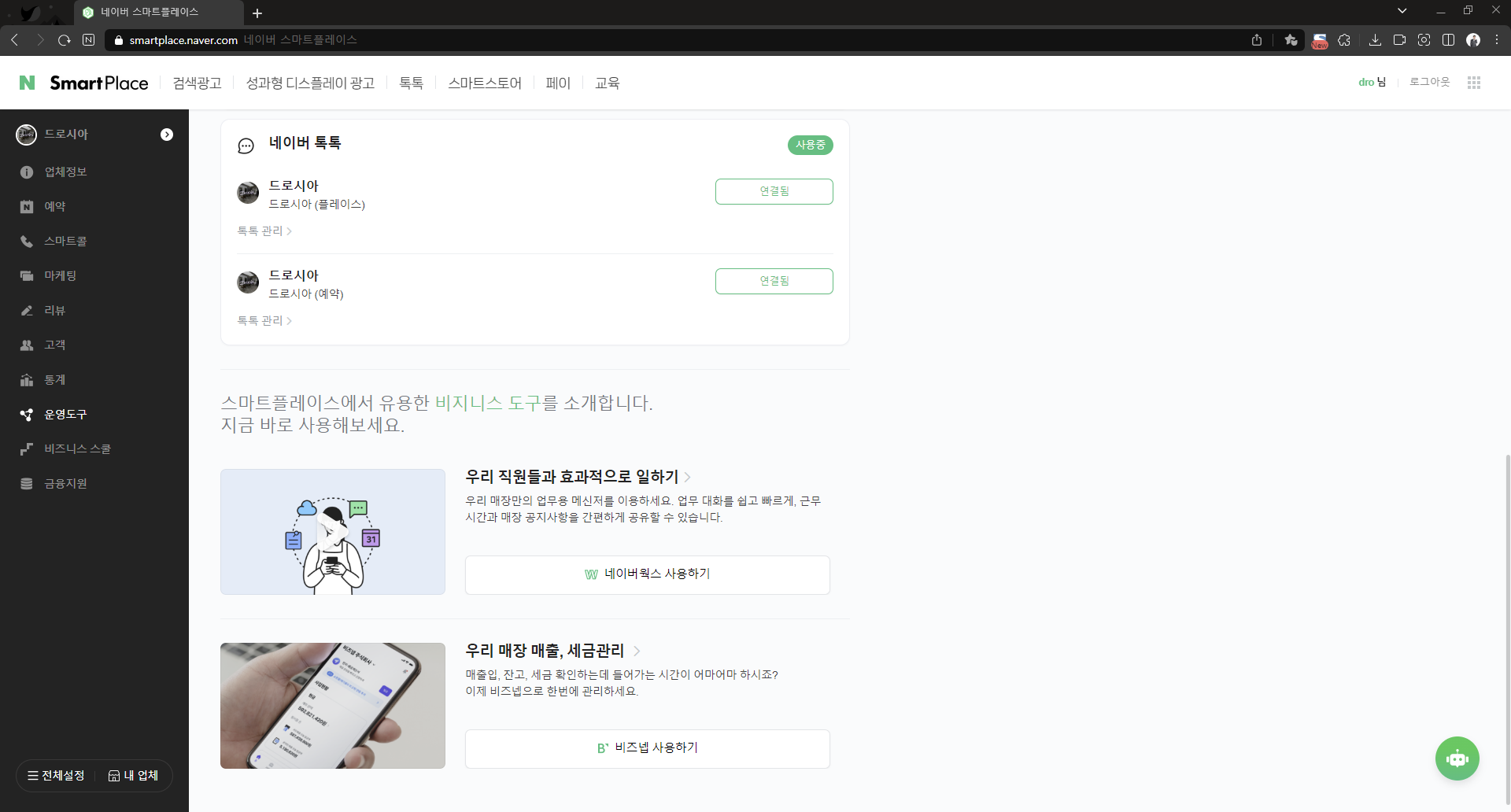 마지막으로 스마트플레이스에 톡톡 연결은 필수다. 톡톡 계정만 만들고 연결이 안 되어 있으면 무용지물이다. 연결 여부를 꼭 확인해야 한다.