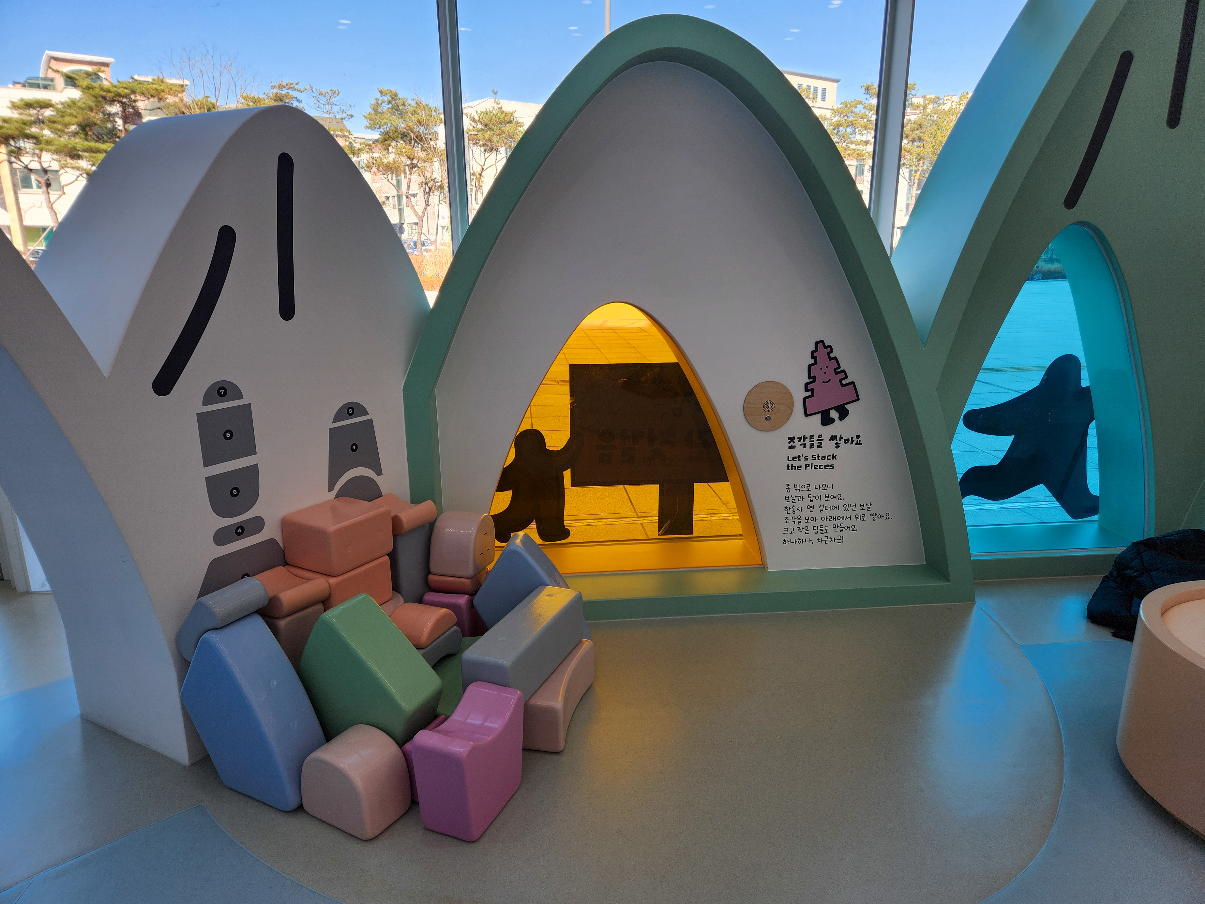 1층 입구로 들어와 바로 오른쪽으로 돌면 아기들이 놀 수 있는 작은 놀이시설이 있고, 안에는 수유실 및 기저귀 갈이대 등 편의 시설이 잘 준비되어 있어 아이와 가볼만한곳이라고 생각한다.